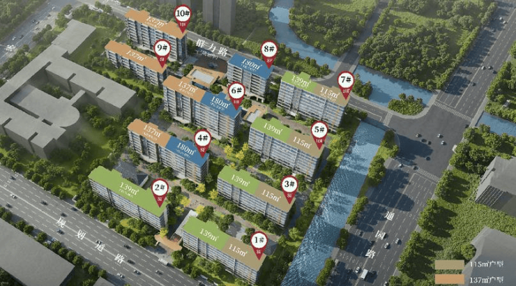 交付标准:精装交付,主力户型为115㎡、139㎡、180㎡