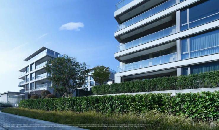 建筑风格:新亚洲低密美学,米黄石材+香槟金铝板外立面,窗墙比超60%,通透采光