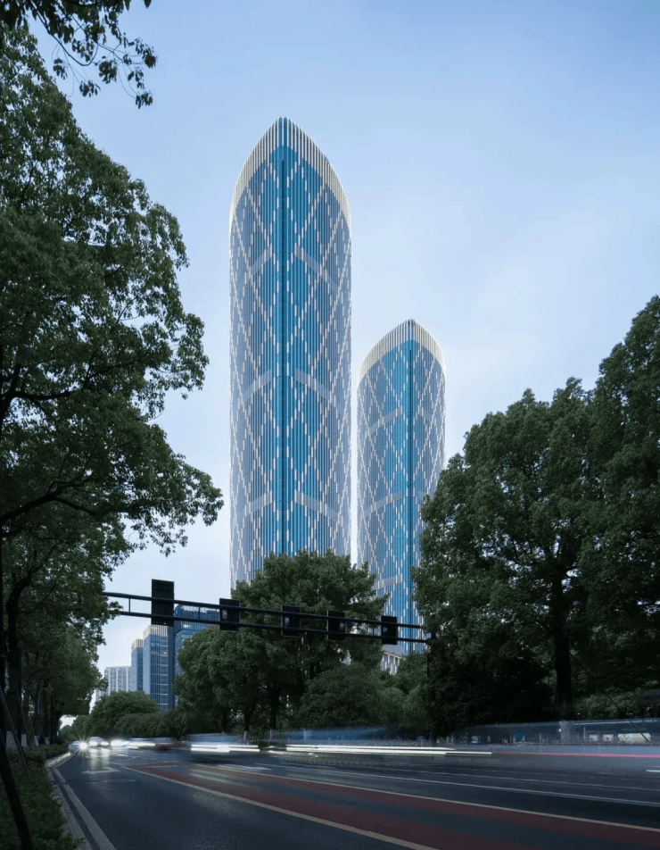 瑰郦中心由浙江新世界集团打造,是继翡郦中心之后,在奥体板块打造的第二个世界级酒店加高端公寓的标杆作品。项目定位为全球仅13家的托尼洛·兰博基尼酒店IP行政公寓,与兰博基尼Veneno酒店同址共生,共享其顶奢服务体系。项目由两栋约250米的超高层双子塔构成,位列杭州天际线TOP2,因其流线型设计与地标高度,被誉为“小杭州之门”。