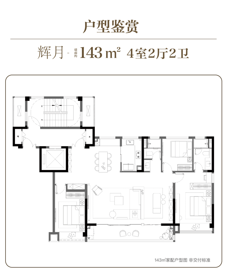 143㎡四室两厅:精装交付,带阳台景观,客户复购率高,适合改善型家庭。