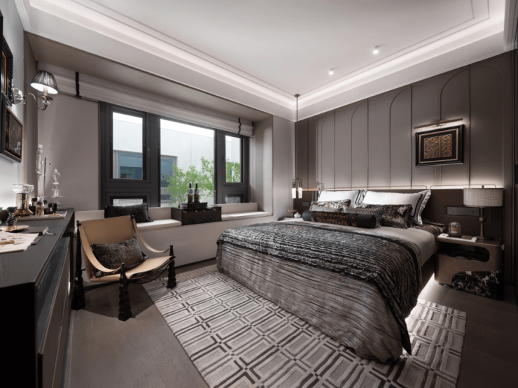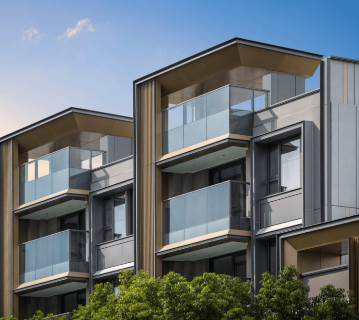 新加坡豪宅nassim road立面设计,采用大面玻璃,增加金属格栅+铝材搭配,融合学府灰高级配色,呈现学府灰与玫瑰金辉映的宝格丽高奢风格。