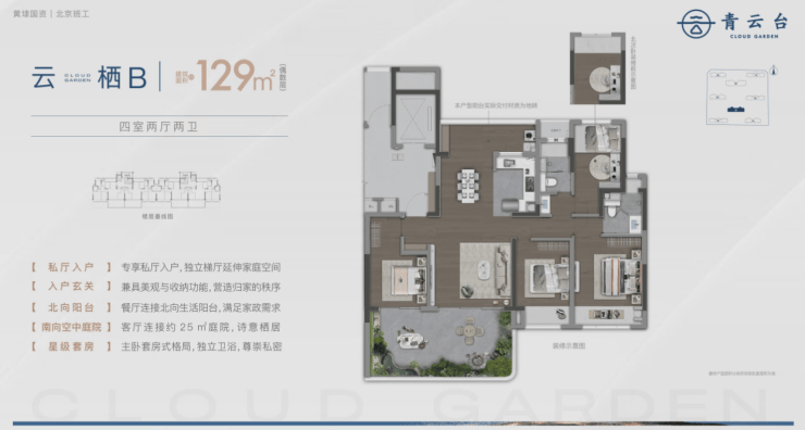 129㎡4室2厅2卫(偶数层)客厅联通25㎡空中庭院