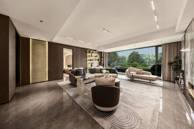 客厅与景观阳台相连,动静分区合理,打造出真正兼顾会客与生活的双重场景。