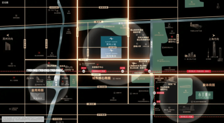 交通枢纽:毗邻轨交11号线白河潭站与昆山航站楼,可快速连接苏州园区、上海