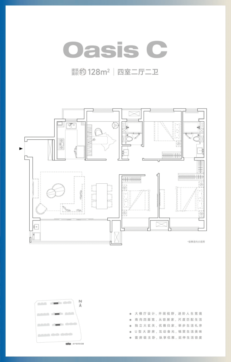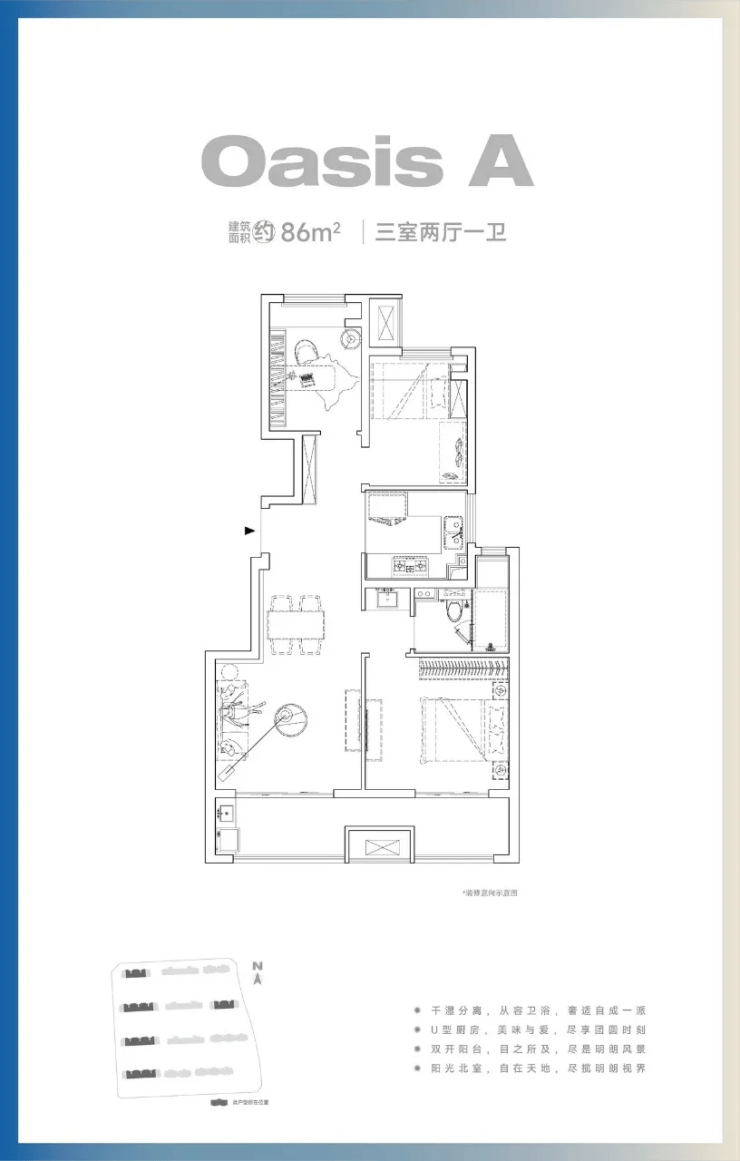 户型创新:主力户型86-143㎡三至四室,97㎡户型配备6.7米南向双阳台,143㎡四室实现四开间朝南,满足从刚需到改善的全周期需求。