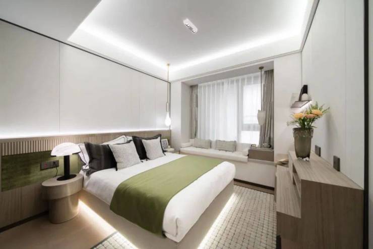 深安上居规划有12幢现代美学风格的建筑,玻璃幕墙搭配米白色和深灰色材质涂装,简约线条分割完善挺拔向上的平面美学。