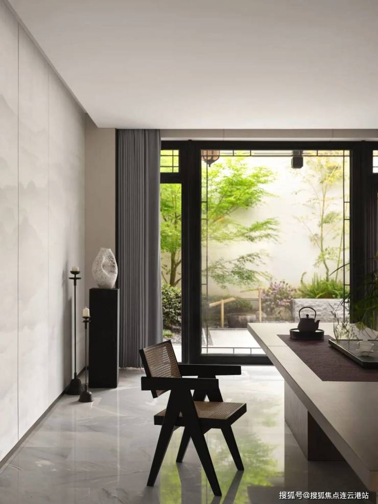 进退之间是人与景相逢将东方精神融入现代生活入户景观延续了山水园林的意趣,修竹如玉,流水汀步。随下沉庭院缓步慢移,即达地下二层的主客厅。
