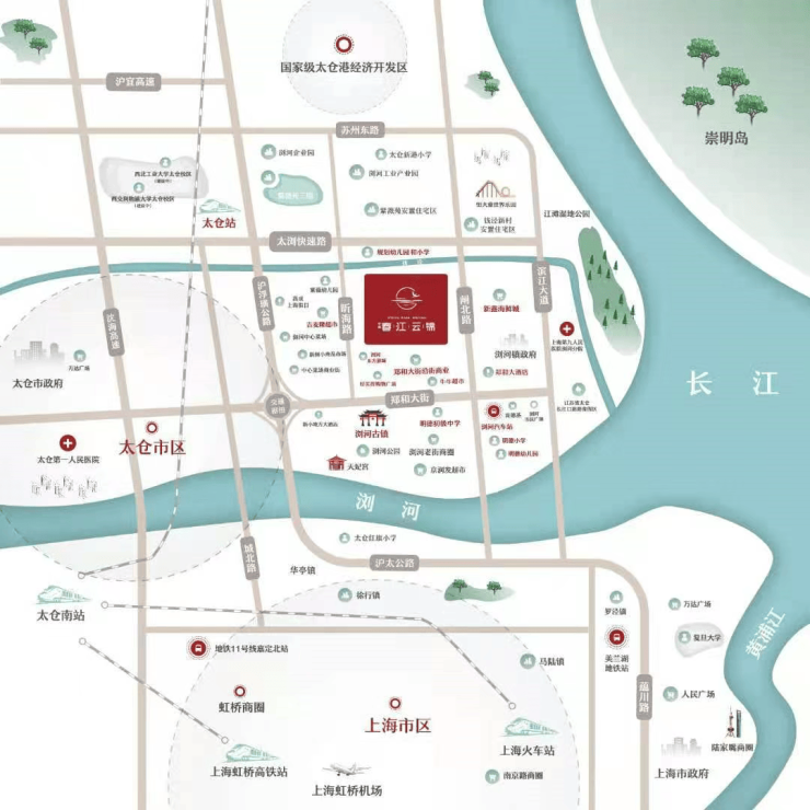 铁路枢纽:距沪通铁路太仓站约6.6公里,未来可通过嘉闵线北延实现与上海轨交换乘,通勤能级持续升级 。