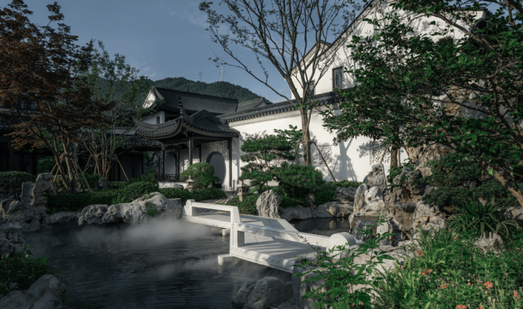 建筑由GOA大象设计(原绿城凌建团队)主创,融合江南民居“粉墙黛瓦、飞檐翘角”;