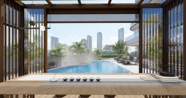 精装标准:国际一线品牌建材,电动提升全景落地门(单樘价值约30万元),空中花园式禅意景观