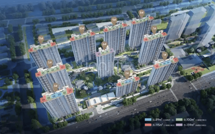 主力户型 :建面约 89㎡、100㎡、115㎡ 三房两厅两卫,南北通透,三开间朝南