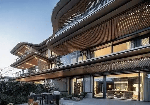 合院:建面约305-455㎡,全套房布局,3层联排配备南向双露台。