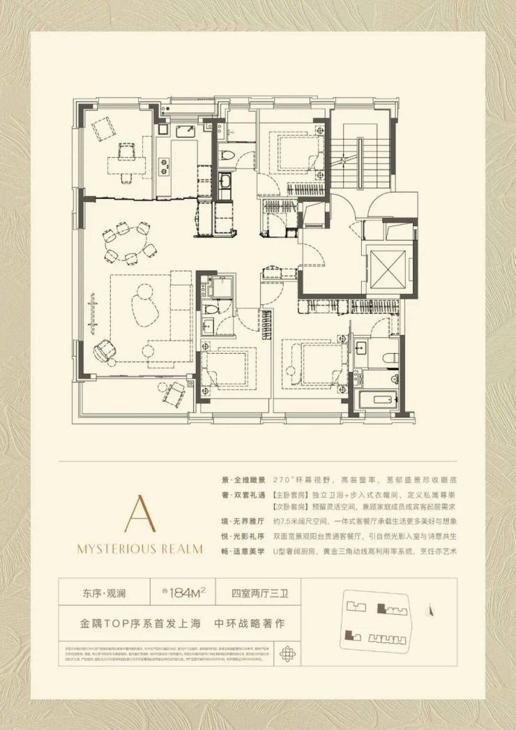二是最大化楼间距,达到34-47米,比同类产品更宽,确保每栋楼的景观视野与采光最优。户型设计与规划目标契合,在景观价值最高的北地块西侧设置了184㎡角厅户型,既保证3.5个南向面宽,西侧又全打开,形成270°环幕视野,全屋观景面周长近36米。它也是整个桃浦智创城唯一不用封阳台的项目,相比竞品户型使用效率更高。