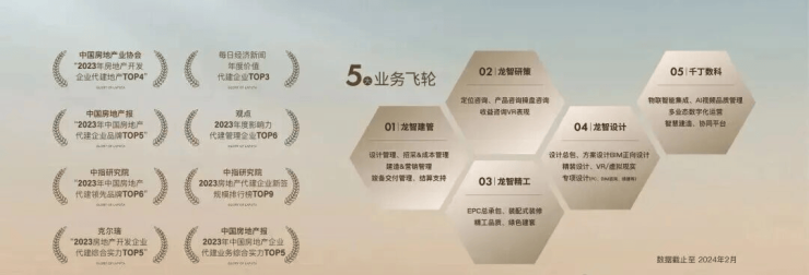 龙湖龙智造集成龙湖集团全业态开发经验,及行业领先的数字科技能力,以“龙湖智道未来城市”为理念,五大业务飞轮协周驱动,致力于成为“智慧营造领航者”