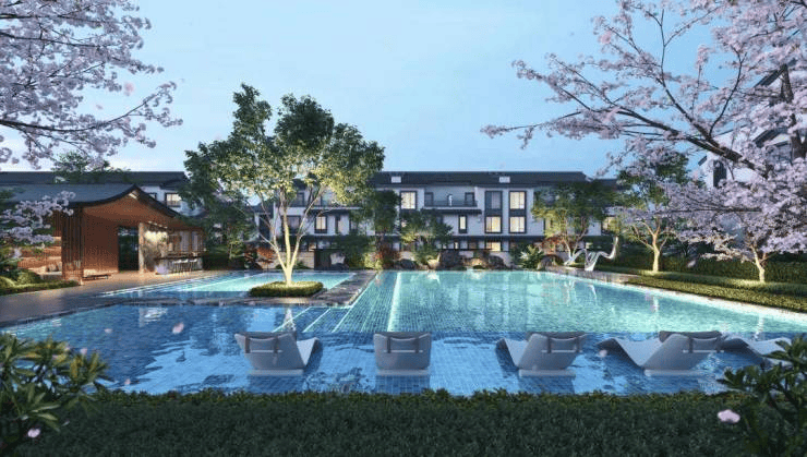 社区内规划约2000㎡奢华会所、下沉水院、松林剧场等景观,营造东方意境。