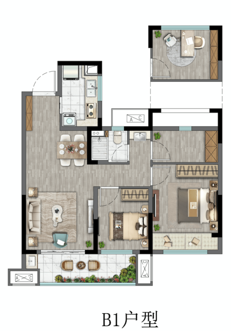 B1户型3室2厅1卫88m2