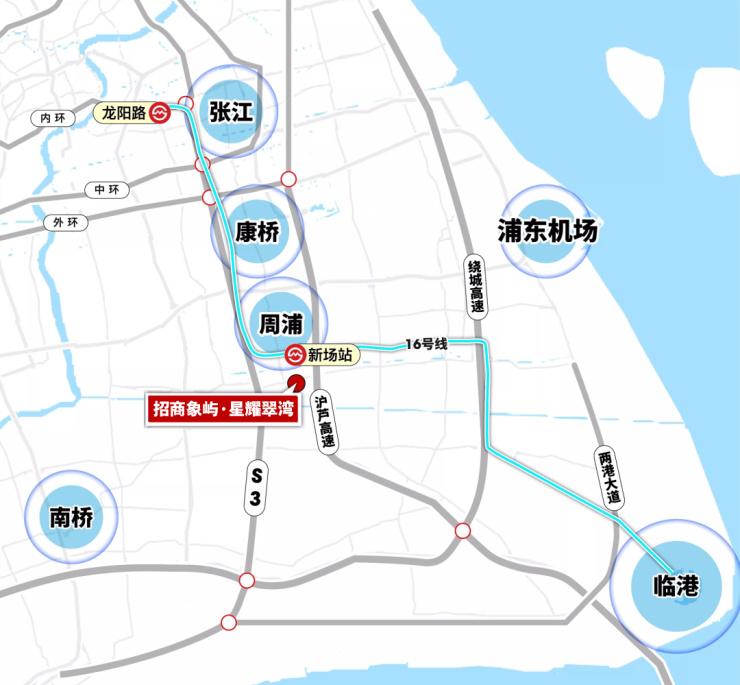 距离16号线新场站约1.6公里,6站可达龙阳路地铁站,换乘2号线1站便能直达张江高科!