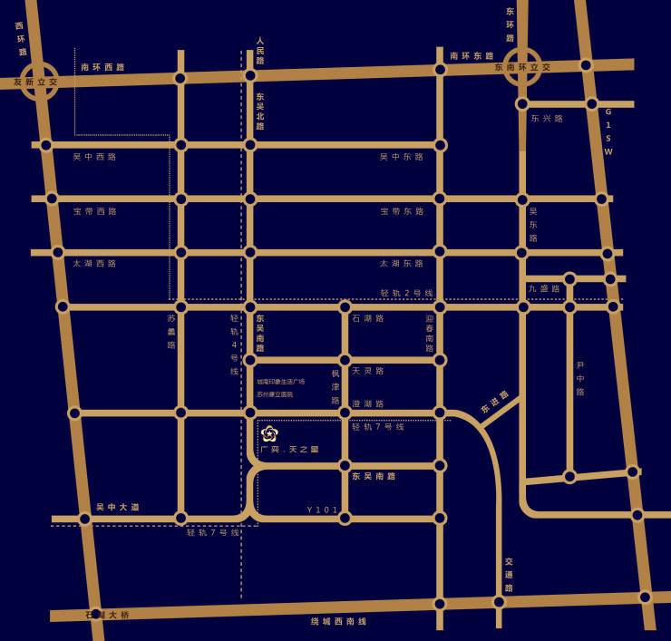 地铁4号线红庄站约300米,步行5min可达;地铁7号线枫津路站约764米。周边公交线路丰富,自驾可快速接入吴中快速路、友新高架等主干道。