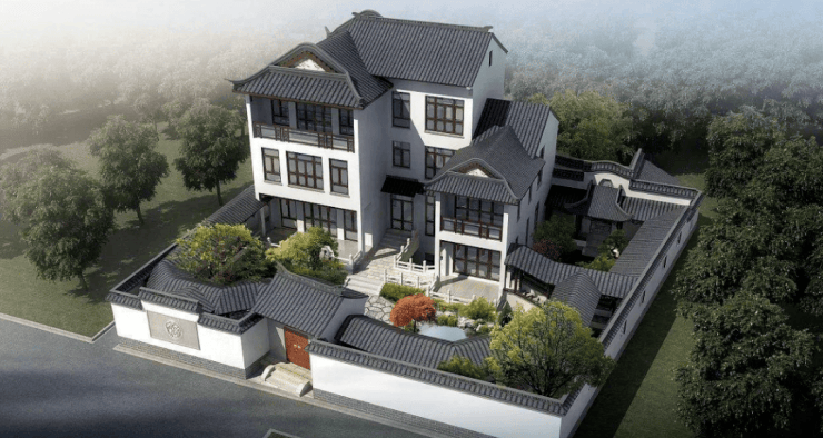 采用"三进式"传统院落布局,主卧套房均配置独立衣帽间