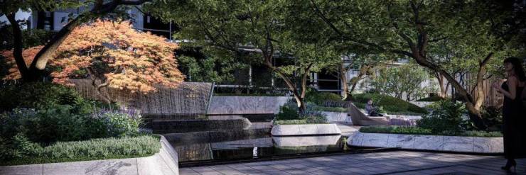 项目实景示范区已于2025年12月12日开放, 以"光之叙事"为主题的建筑灯光秀惊艳亮相,约百米的先锋门庭和范思哲黑奢石水景展现了项目的高端品质。