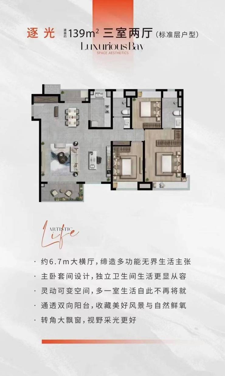 建面约139㎡上叠 3+1房2厅3卫