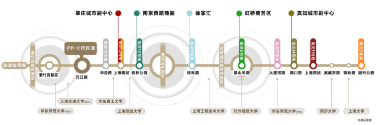 交通能级越高,地段价值越大,被称为西部大动脉的15号线,自北向南串联3大科创园区、9所高校。从项目出发前往15号线元江路站,真正的步行可至,当你亲自用脚丈量之后更有切身体验。5站徐汇、9站上海南站、12站漕河泾,还可换乘1/2/3/7/13号线等,扼守城市发展的咽喉。