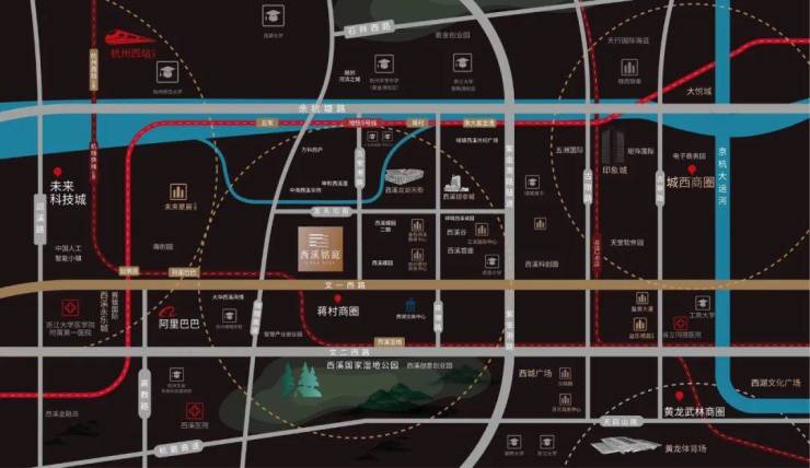 高铁枢纽:距离杭州火车西站约6公里,便捷的高铁交通可轻松实现长三角城市圈快速往来,为企业商务出行、拓展业务提供极大便利。
