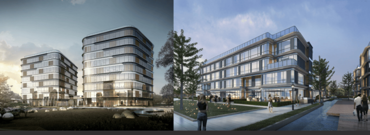 滨水空间:项目北面一线滨水,紧邻五常港河和农业观光公园,形成河流川流而过的风水佳地,打造了散步游玩的休闲滨水空间。