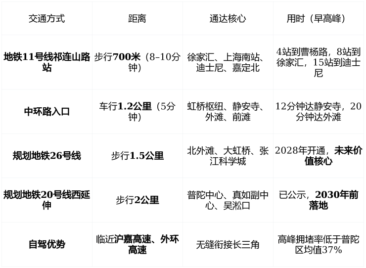 从项目出发, 步行8分钟到地铁,5分钟上中环 ,早高峰通勤效率优于普陀区90%新盘。