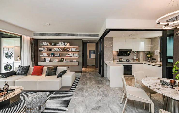 超越常规阳台制式,提升窗墙比,尺度拓宽,将阳台成为诗意园境画布任凭风光与自然绘就,将光影清风更透彻地引入室内;家庭社交LDK厅,大开间客户与阳台联通,用创新洄游设计,开辟出生活的“N种”可能。
