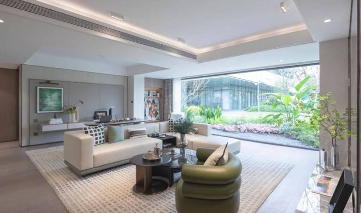项目定位高端,主打建面143-182㎡四居户型,精装交付(含中央空调、地暖、新风系统),装标约5000元/㎡,均价38,500元/㎡,总价539-701万元/套
