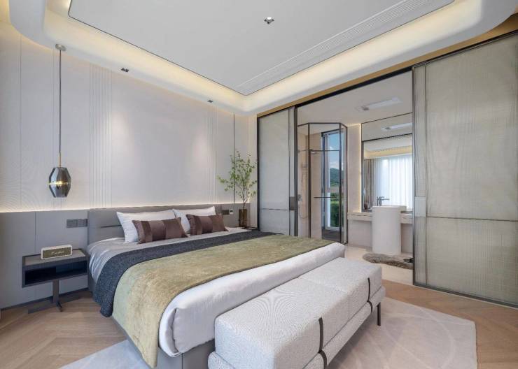 建筑风格:纯正法式设计,采用孟莎式斜坡屋顶、天然石材干挂外立面,融入雕花、廊柱等古典元素