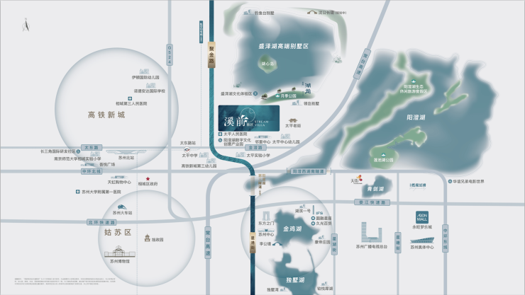 核心资源:项目紧邻盛泽湖与阳澄湖,坐拥苏州主城区稀缺的“双湖生态”