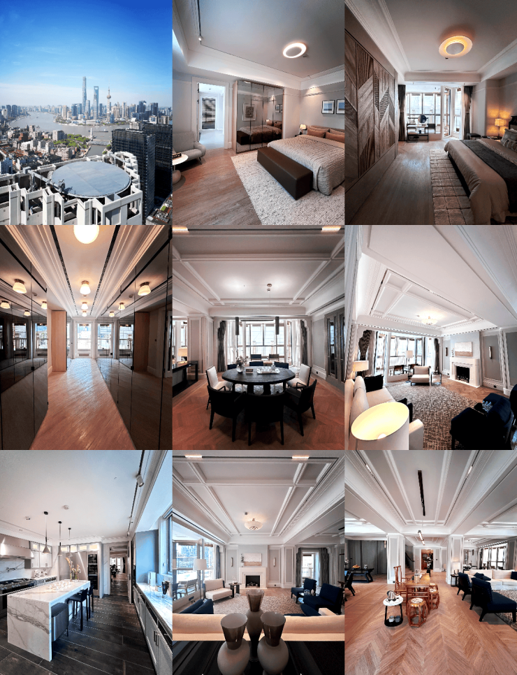 商业集群: 项目周边分布多家超五星奢华酒店:BVLGARI宝格丽酒店、Bellagio宝丽嘉酒店、华尔道夫酒店、W酒店、半岛酒店、悦榕庄等。项目东临北外滩;东南眺望外滩、陆家嘴;南毗苏州河、外滩,纵享超奢的景观价值。