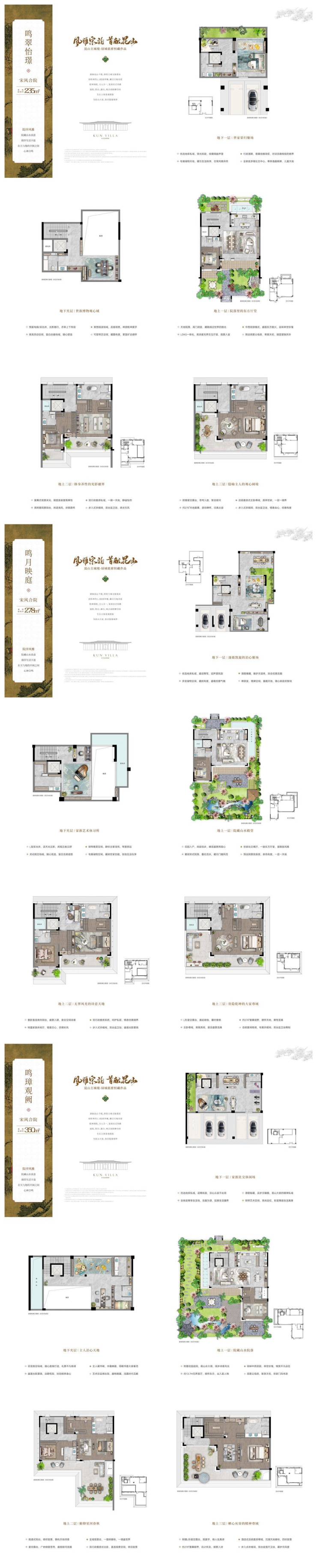 •产品面积:建筑面积约235-350㎡宋风合院;建筑面积约149/178㎡四代平墅项目