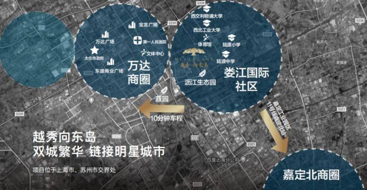 上海侧:8公里可达嘉定罗宾森广场、欧尚超市