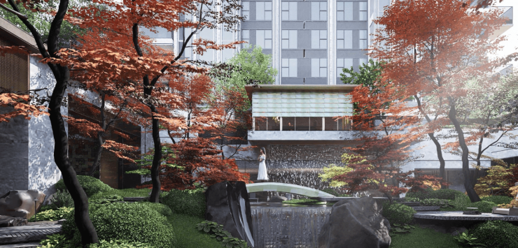 约500㎡归家门庭双瀑环抱,营造强烈仪式感
