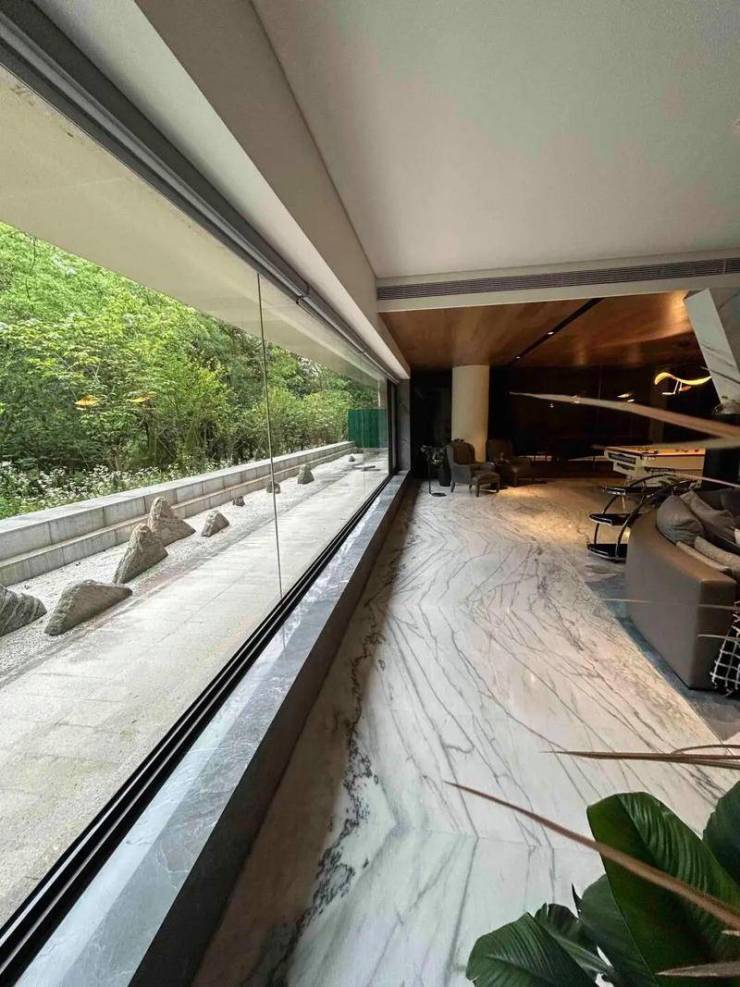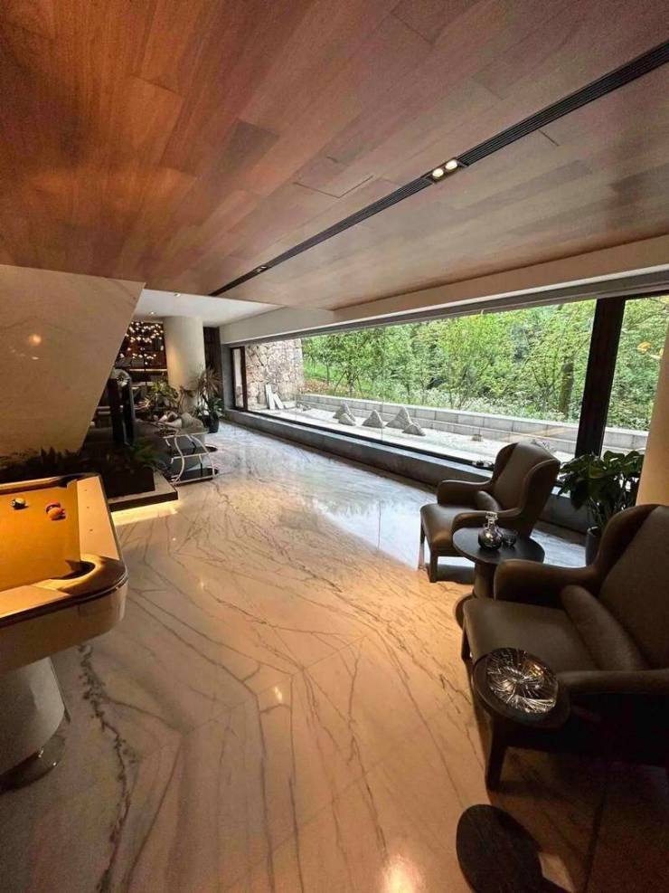 由日本园林大师植弥加藤执笔,还原400米自然坡地景观,最大高差15米,全落地窗模糊室内外界限