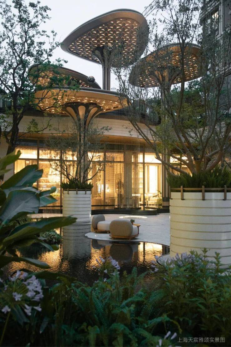 35%绿化率,“中央景观轴+组团景观+入户景观”三重体系,移步异景,曲径通幽;
