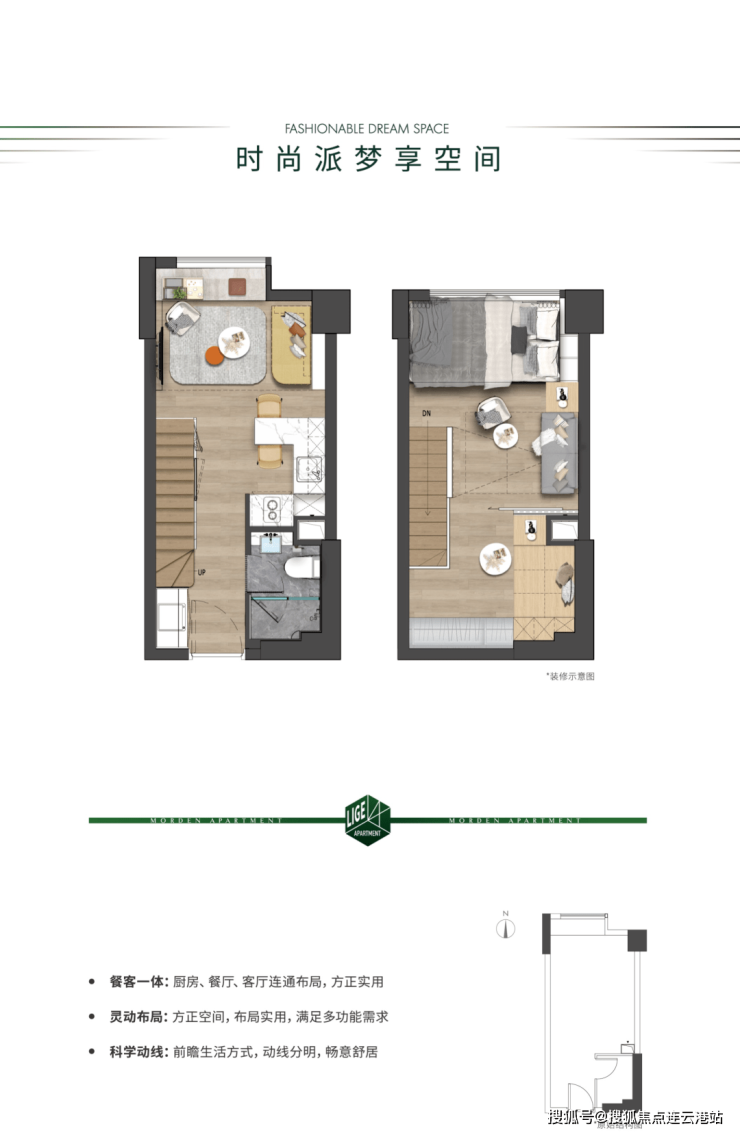 主力面积27-55㎡,挑高4.5米Loft复式,总价32万-79万,均价约1.3万元/㎡