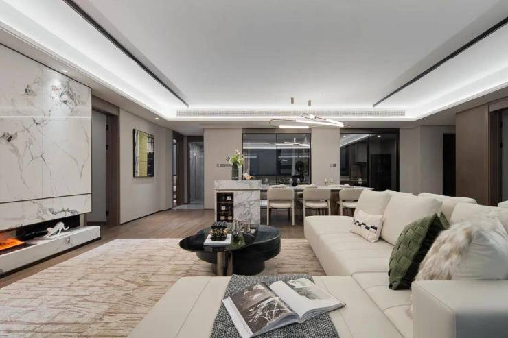 如此阔达的巨幕宽厅,不仅是吸纳阳光与清风的自然容器,也是满足居家休闲、家宴聚会、洽谈会客等复合需求的交互场域,呼应高阶圈层宽广的气度与胸怀,排场尽显,风光体面。
