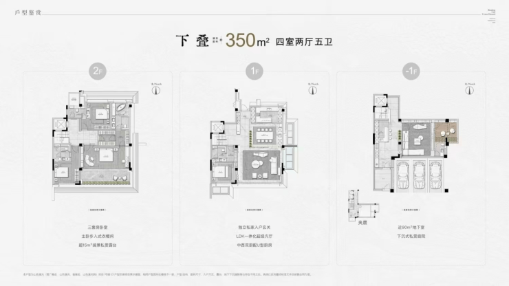350㎡ 下叠 1300 – 1500 35,500 – 42,000 4室2厅5卫,庭院面积超80㎡,私密性与功能拓展性极强