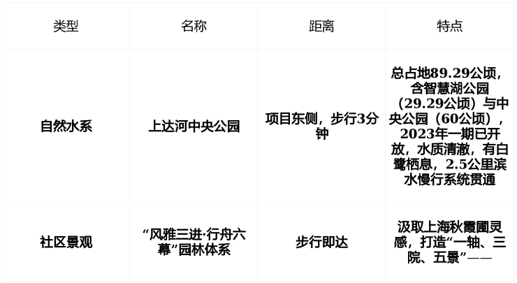 | 城市公园 | 沁园湖公园、长岛公园、环城水系公园 | 2–4公里 | 2026年青浦区重点打造“城市生态绿网”,项目为“五园环抱”核心节点 |