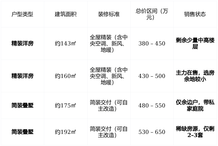 ✅ 在售情况(2026年2月最新):低密墅居尾盘,稀缺户型所剩无几