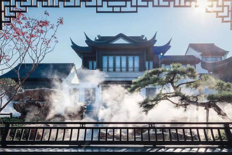 基于傍山枕河的地貌现状,整个示范区秉承江南古典园林门里有园,园里有亭,亭外有馆造园理念,规制五大东方场域:门、道、园、亭、馆,将东方古典意境贯穿其中,每一处皆演绎一味东方生活之韵。
