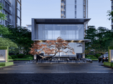 建筑立面采用铝板与超宽幅玻璃,打造“天幕框景”效果,梁志天团队操刀室内设计。
