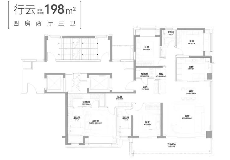198㎡/223㎡顶跃:含创新家政间及多功能露台,总价1004-1228万。