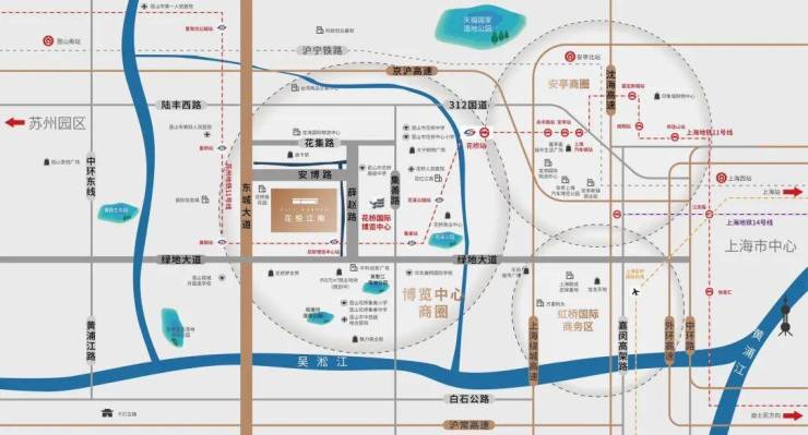 【沪苏主轴 交通主场】扼守沪苏交通脉搏,地铁11号线花桥博览中心站4号口,出站即入家园,3站直达上海。三横三纵立体交通路网,驭享城际生活。