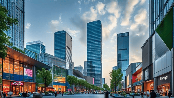 City Core:这三层商业是城市标志节点,外立面大面运用了弧面铝板和玻璃幕墙,高大的柱式门头营造第一眼的庄重感,是打破传统、时尚新锐的新街道,未来这里将成为地标级符号。