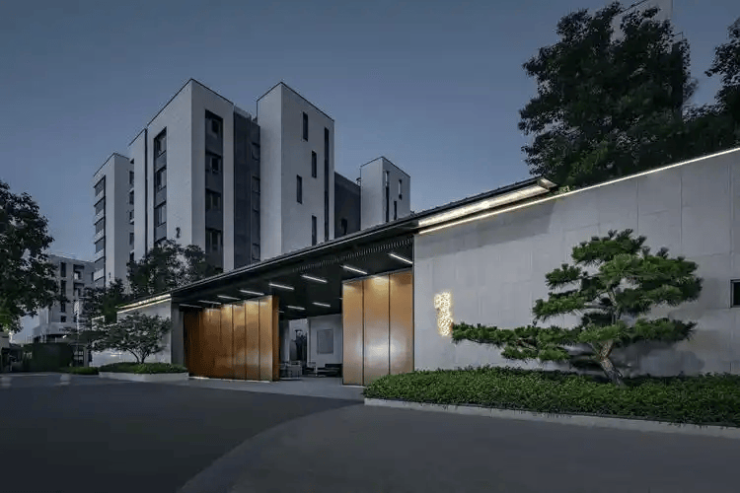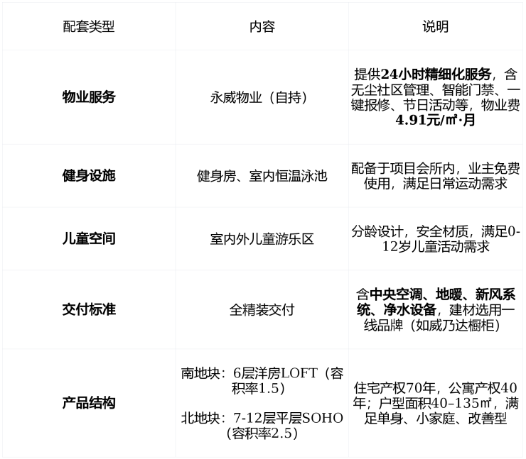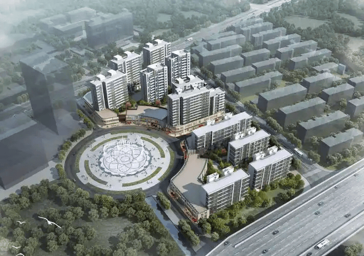 小区整体绿化率约20%,南地块(洋房LOFT)采用围合式庭院布局,提升私密性与景观渗透;北地块(平层SOHO)以现代陶板幕墙与点状绿化结合,兼顾美学与通风。